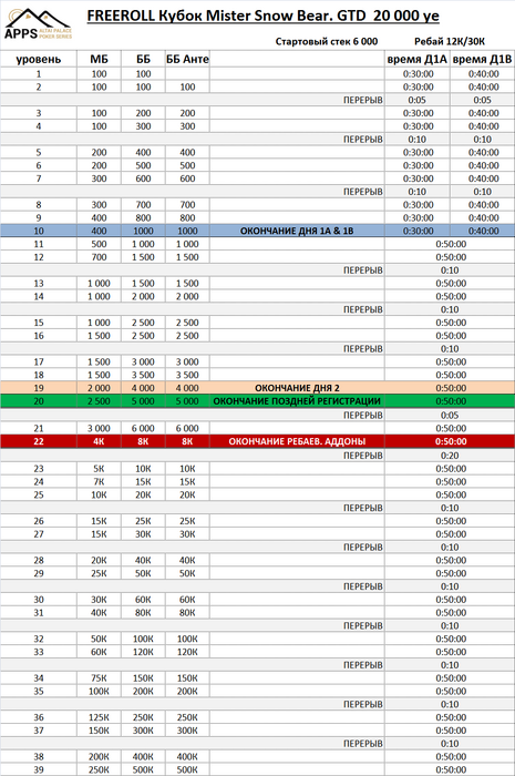 Стартовые блайнды 100\100, структура турнира достаточно плавная, стартовый бесплатный стэк 6.000 фишек