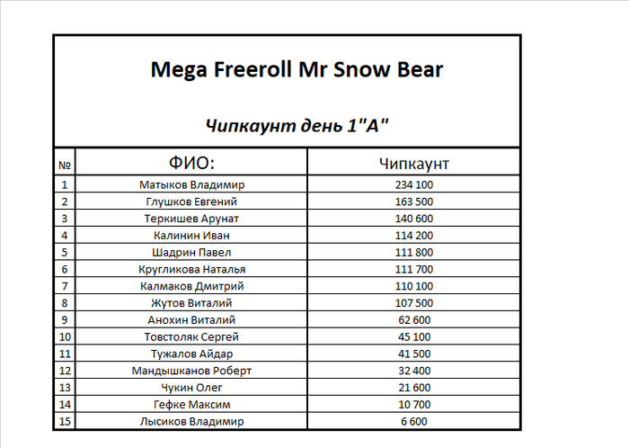 Вчера завершился первый стартовый день Д1А Мега Фриролла Mr Snow Bear