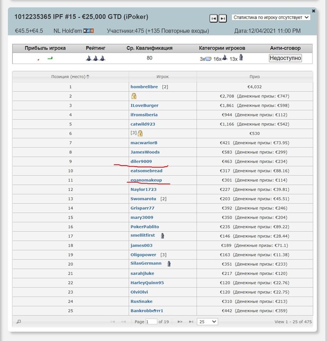 Кидай. Вообще лучше бы запилить всю историю с рума в первый пост для наглядности. Там же всего 24 турнира