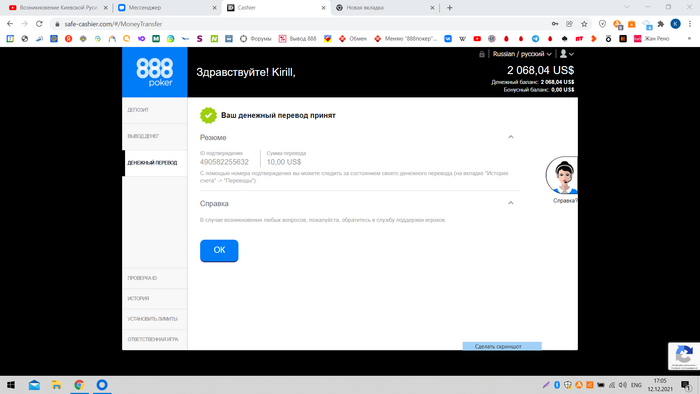 Могу отправить в Вотсап или Телеграм скриншот покер-клиента, с никнеймом и балансом на счету. Все честно, кидать не собираюсь.