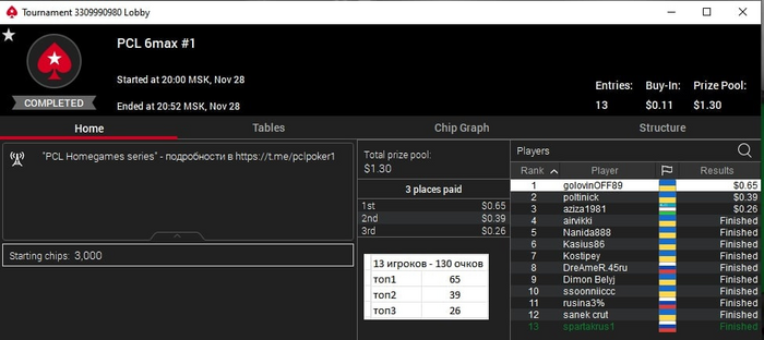 📊Итоги 3-го игрового дня фриролл-лидерборда Poker Competition League и текущая турнирная таблица