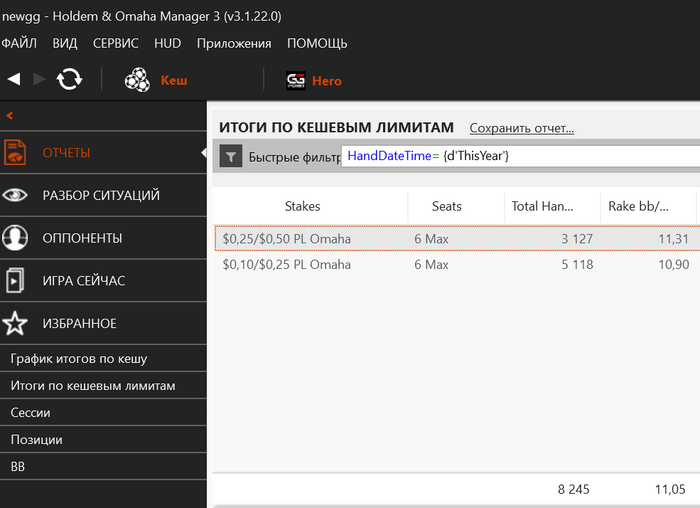 Катал на ГГ всё подряд пло100-пло500, но у них был какой-то баг, когда рейк вообще не отображался в выгрузке, поэтому какие-то достоверные данные у меня только по раш энд кешу за этот год.