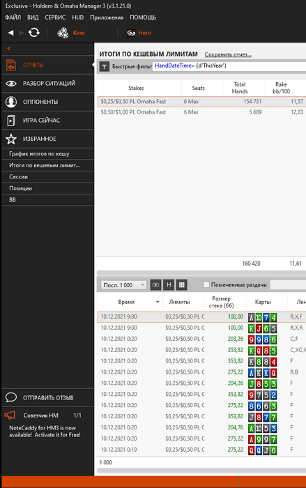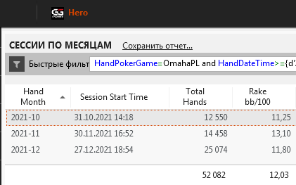 Данные выгружены из покеркрафта в ХМ3 за этот год. Рейк рассчитан вручную (не нашел в ХМ3 этот показатель).