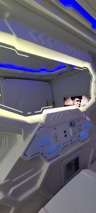 Кстати, когда собирался в командировку, искал гостиницу и наткнулся на очень интересный отель, Капсульный. Раньше ни разу такие не видел, стало очень интересно и решил попробовать пожить в таком. Забронировал, как раз там 200 метров до моря было. Приехал, заселился. Прожил там три дня. Ощущение как будто находишься в будущем, где все люди живут на космическом корабле, как в фильмах У каждого есть свой шкафчик при входе с электронным замком, который открывается с помощью карточки, этой карточкой открывается так же дверь в капсулу. В капсуле есть телевизор, кондиционер, дополнительное освещение, маленький складной столик, сейф, разъемы для usb и розетка. Такие капсульные отели точно не для клаустрофобов но в целом выглядит отлично. Подойдет для тех, кто любит уединение, тишину и покой. Если вам чисто ночевать приходить, то это вообще идеально Из минусов могу только отметить то, что душевая и туалет общие (для кого то это не минус даже), да и как по другому сделаешь там