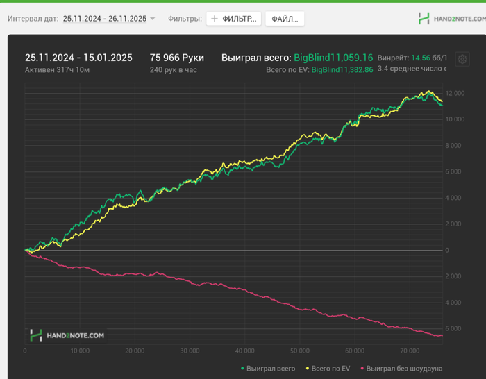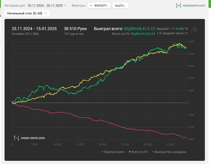 Шарк приложу чисто для галочки, но начиная с 2024 года инфа не является актульной, тк нет результатов с GG и Покердома; на венике после переезда решил не открывать статистику на новом акке; ну и нет результатов с оффлайна офк.