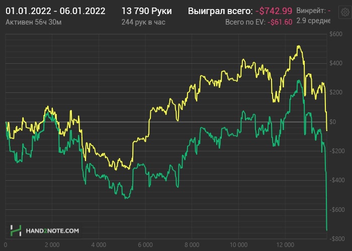 На долго выпал, извиняюсь. До 1 апреля 2022г попытаюсь откатать только 1 рум старсы. Всю старую базу снес . поменял страту и буду ее оттачивать. Начну с нл25-50. но до середины марта играть 100ку точно не буду. Посмотрим, а то может и работу придется искать с таким скиллом как у меня. Пока я в осадке.