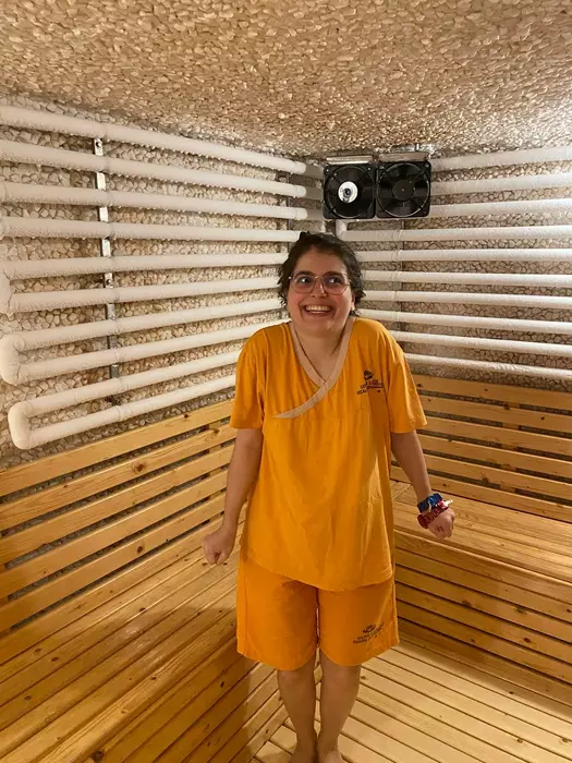 Следующий раз был в Алматы, тут произошёл левел-ап: c десяток разных видов саун, на любой вкус и цвет, общий бассейн, горячие и холодные ванны. Здесь самое запоминающееся тоже было в парилке, в начале каждого часа приходит банщик, приглашает всех внутрь, предупреждает что следующие 15 минут никого из бани не выпустит, провожает засомневавшихся и закрывает двери. Потом начинается нагнетание температуры, использование ароматных масел, чередование размахивания огромного веера, который гоняет горячий воздух между отдыхающими с растиранием снега по коже, ну а как двери откроются все желающие могут окунуться в ванну с ледяной водой и таким видом. Тут мне уже понравилось.