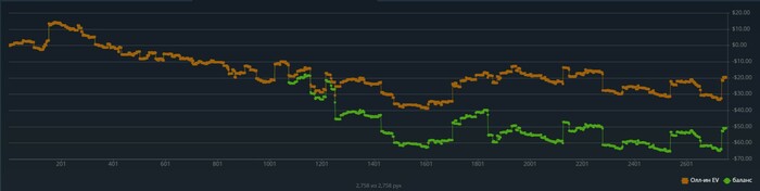 Худший игровой день за последние несколько недель. Сдавали просто ужасно, даже за счет лб не вышло выйти в плюс. Итого -5$