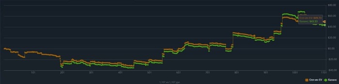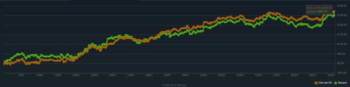 В данный момент не добираю по EV около 180$ вроде как, но за счет бонусов от GG в кассе