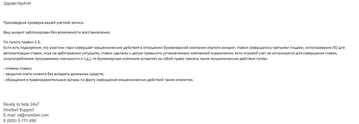 БК мостбет.ру заморозила счетс +70к на борту, через месяц ожидания прошел видеоверификацию, еще через месяц просто удалила аккаунт