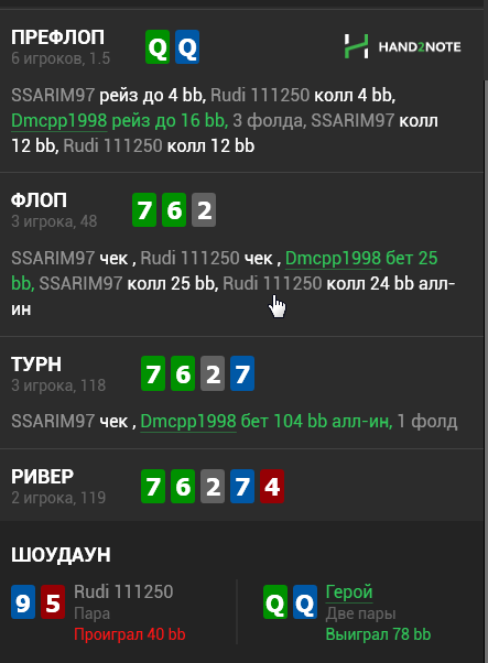 Здравствуйте, интересует вопрос правильный ли пуш на терне в данной ситуации, сыграл так основываясь на SPR + по риверу могла выйти неприятная карта типа A или K