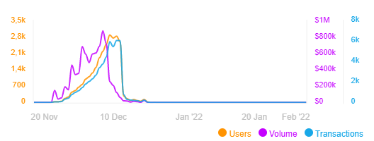 Но судя по картинке с dappradar - пирамида жила примерно с 25 Ноября и до 8-9 ноября. В эти сроки еще можно было вывести деньги = +-13-14 дней.