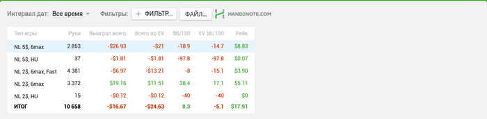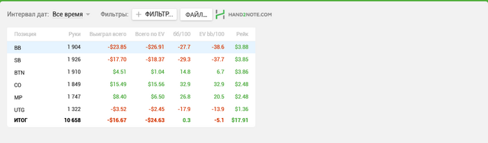 Вобщем откатал первые 10к рук в статистику Получилось как-то грустно. Минус по деньгам с учетом что апает в олл-инах