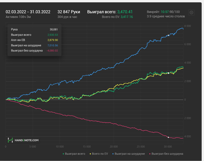 Эх, ну что, вот и закрыл я месяц, результаты не очень, хотя тренер говорит, что диспа и нужно катать дальше, туриков много катать не получается, катаю только вечер или в выходные где большое афс 😥 про переезды и тильт уже не буду говорить, бывает что заканчивая сессию проскакивает мысль и покерную карьеру закончить сразу, но раз раз я выбрал такой путь, значит буду страдать дальше, все таки когда-то я должен доехать).