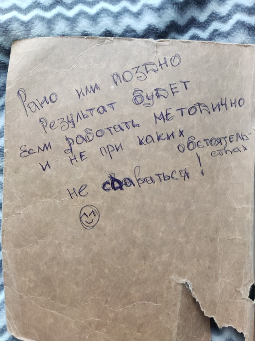Еще в прошлом году, в самом начале этого пути, мне посоветовали завести тетрадку, куда бы я записывал свое мысли, ошибки и т.д. касательно покера и каждый раз ее открывая вижу свою мотивирующую запись: