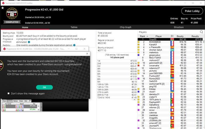 Покер я не оставил, все также смотрю Lorema изменил подход к своей игре и режиму, сейчас играю микролимиты (до 5$), в основном на ЕС, игровые дни у меня это пятница и суббота вечер-ночь, потиху наживаю на корм Мишельке дальше-больше