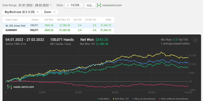 Предлагаю купить долю. Пакет 35к раздач SH ipoker NL50