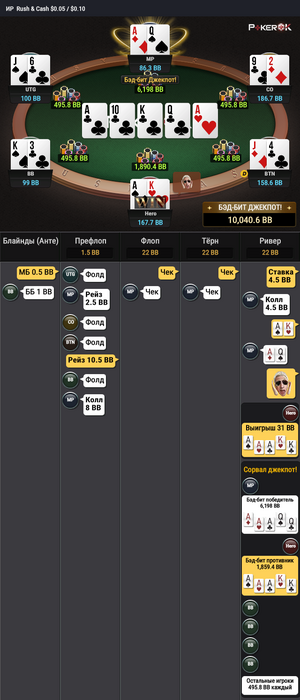Раньше была акция Flush Jackpot, в шортдеке (техас 6+) на неё уходило около 8-8,5 блайндов на 100 рук, но при этом, в отличие от BadBeat Jackpot эта сумма практически полностью возвращалась игрокам, как любителям так и регам, при этом даже разгоняя игру в более лузовую сторону
