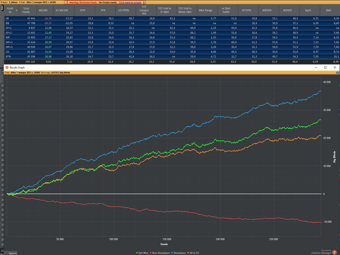 Первую трену провели по разбору базы - были указаны конкретные ошибки и способы их исправления; автоматически вышли на префлоп, поправили мои диапы, которые никуда не годились из-за высокого рейка на микролимитах. Наметили план для следующих двух трен. Планирую и дальше заниматься у Дениса.