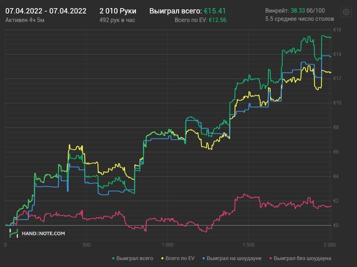 Вот для сравнения резалты пати с фильтром NL2, где играл все столы подряд без селлекта и в дневное время: