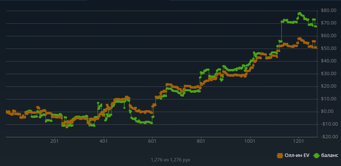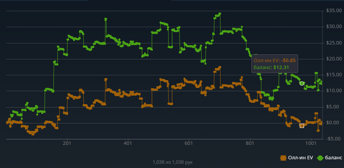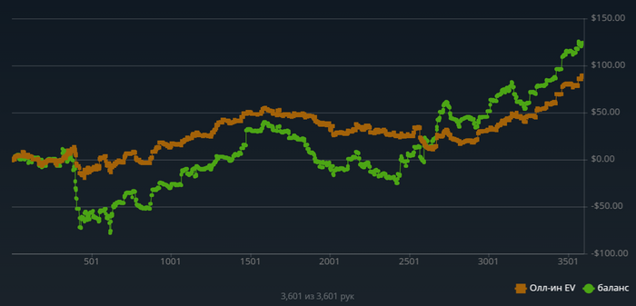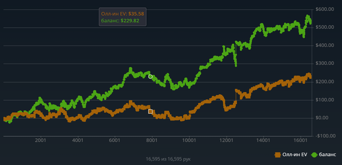 в общем решил для себя буду выкидывать график раз в в день, так как играю не давно в омаху 5-ть карт да и лимит 0.2-0.5$