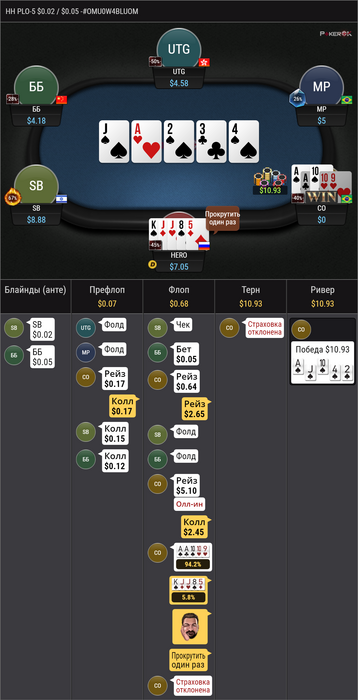 сегодня решил немного попробовать нл 5 омаха 5 карт