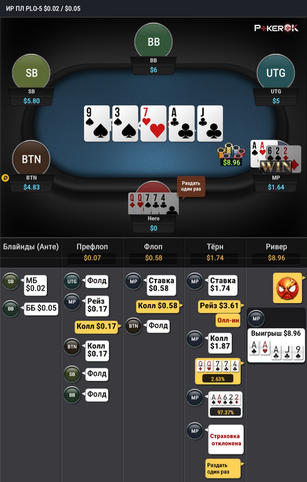 еще немного выиграл на plo 10 окол 3-х стеков в плюс