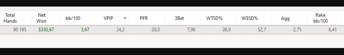 на мои ласт 200к рук, по смартхенду я нулевой, по факту 4бб+ но что там и как я не вникал, считаю что там данные можно использовать только для анализа плюсует игрок или фиш.