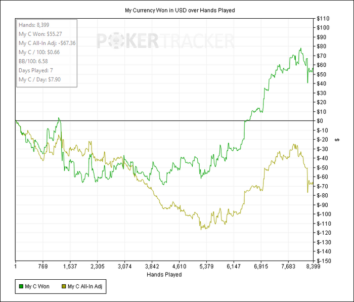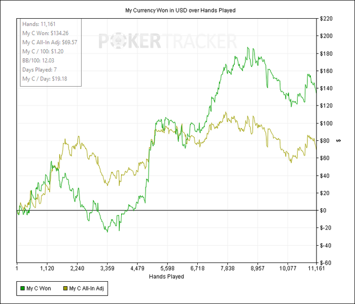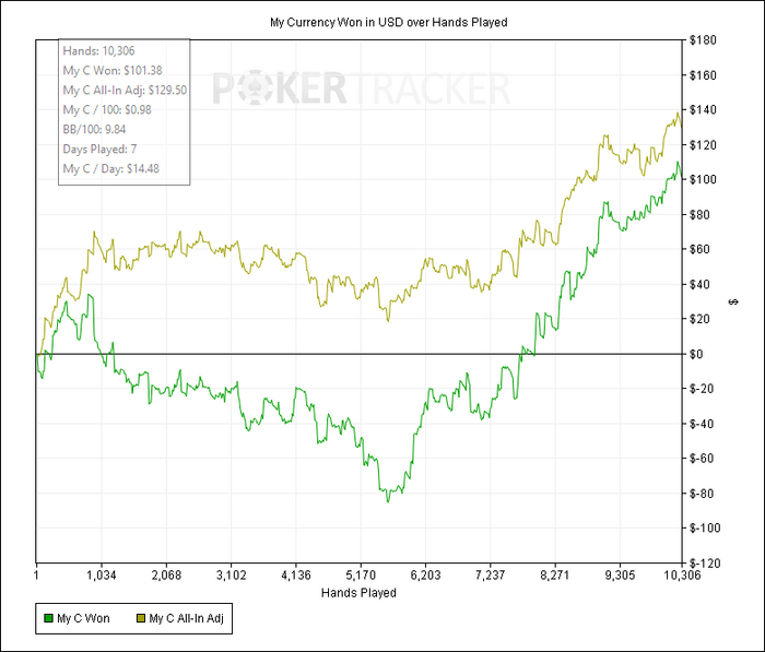 Цель до 20 октября этого года заработать 10K$ . Выяснил что пока бью только NL10 с 10бб+ но на этом лимите не смогу за такой срок столько выиграть , поэтому планирую работать больше над игрой и все-таки подняться на несколько лимитов выше . БМ NL10(25би) NL20(30би) если доберусь NL40(35би) NL60(40би) NL100(50би) рейбек не планирую использовать для игры( но планирую на обучение) но если нужен будет более крепкий банкрол для штурма лимита оставлю такую возможность при переходе на NL60 . Сколько я смогу играть и уделять около покерной деятельности ? Пока-что я работаю на работе и не могу много играть и работать над игрой , но через 2 месяца и последующие оставшиеся 3-4 месяца смогу уделять покеру по 10-12 часов . Отчеты продвижения марафона по понедельникам .