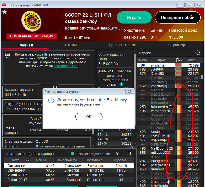 Открыл покерстарс и обнаружил, что играть в турниры на реальные деньги нельзя.