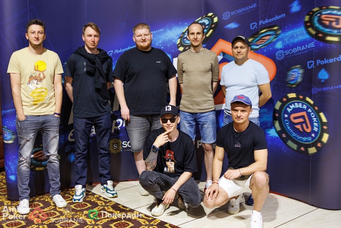 Мощно стартанули. Пока всё ограничивается одним столом, остальные находятся в режиме ожидания. В игре пятеро: Сергей Чанцев, Роман Орлов, Олег Вахрамеев, Вячеслав Дербышев, Артем Пузанов.