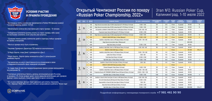 Что ещё? Разнообразный выбор сайд-ивентов с бай-инами от 11 000 до 82 500 рублей. Сразу четыре события пройдут в формате Progressive Bounty, причём в двух из них весь призовой фонд полностью уйдёт в нокауты.