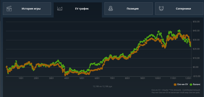Вот чё мне нарисовал ПокерКрафт (Да да да, "кардиограмма" добротная, в конце случился "инфаркт" если по ней судить)