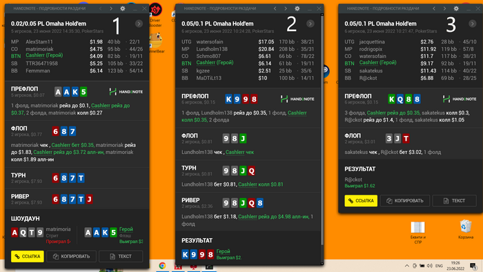 5.Согласен, однако я слышал что в омахе самое плохое что можно делать это давать бесплатную карту оппу, на ривере просто хз что нам платит с капнутого диапазона по недоехавшим флешам, кроме топ пары и рандомных двух пар, поэтому решил что лучше меньше но хоть что-то, или это так не работает? (Опп фиш, но мало на него рук, около 20, не подметил никаких паттернов поведения)