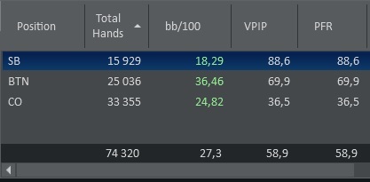 давай считать, общую дистанцию Хироу нигде не выкладывал, но зум такая помойка, что кол-во рук с каждой позиции стримиться к рАвному, только ББ заметно отрывается(лично у меня), потому что почти в 100% случаях игра начинается с него.