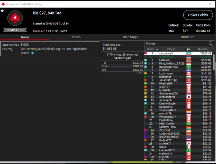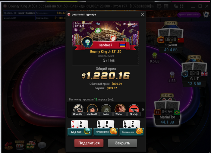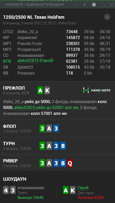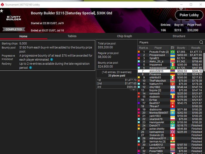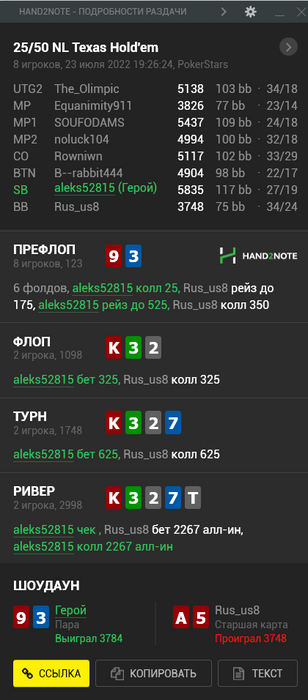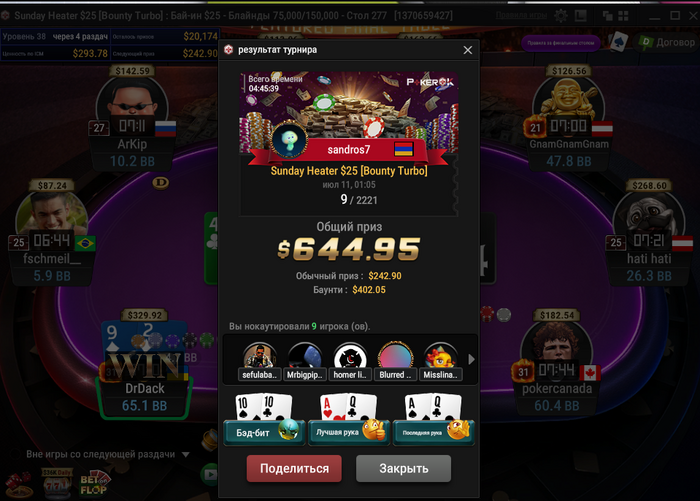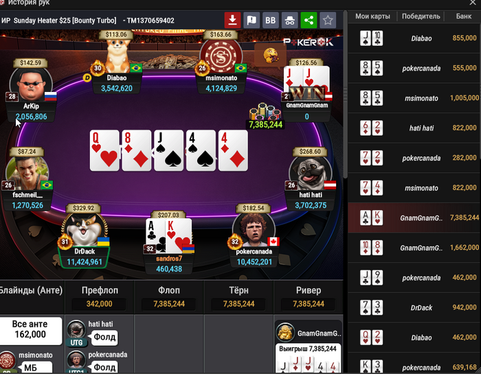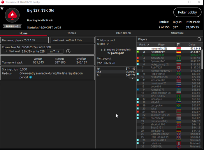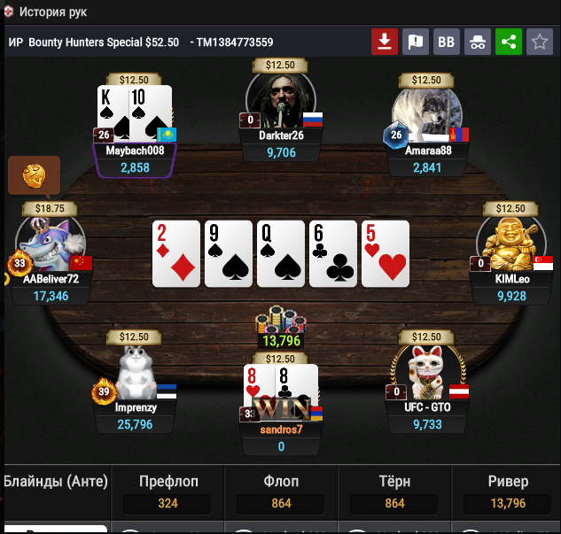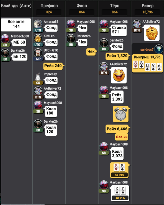 С запомнившегося: в 25-ке на финалке сдали кулер, обидненько. Но мне кажется, нужно было сфолдить, он запушил на большом блайде 29 бб , считаю диап там сильный 1010+ ад маст + ак разные можно и подвыкинуть, а ак мастевые уже кол , а так кол минусовый выглядит на глазок , но сам виноват, сделал плохой анализ прежде чем нажать кол