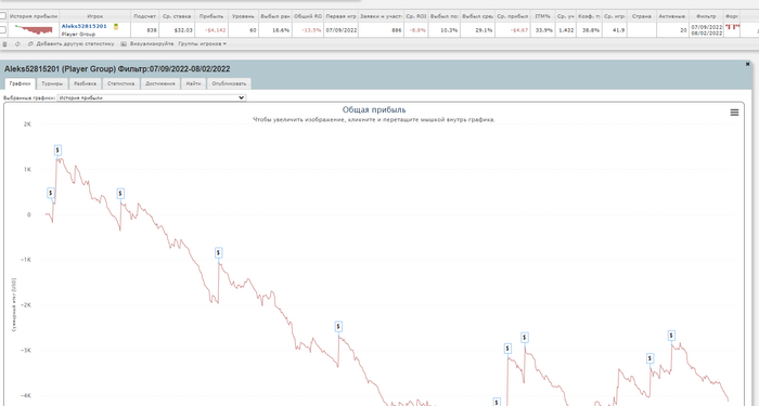 Я откатываю за 2 месяца( с 9.07.22 по 11.09.22 вкл) 3к мтт турниров с роем 20+. Что я получаю: