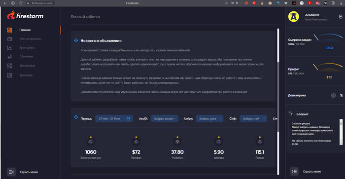 - сделать несколько IT-продуктов для игроков и сотрудников команды;