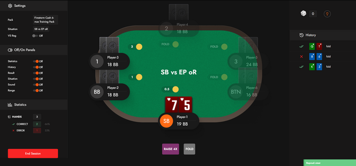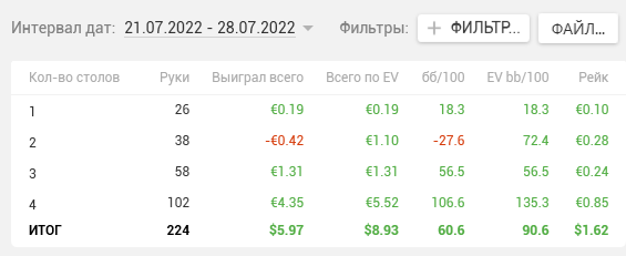 Решил больше заниматься в тренажере. Начну с простого - с опенов, дальше vs 3bet и свои 3bet против свободных позиций. Если исключу тут ошибки, думаю получится и по дистанции поднабрать и по лимитам подрасти, так как винрейты улетают прям солидно из-за префлопа.