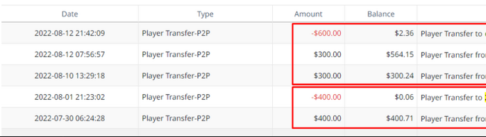 Учитывая, что мы не можем знать на 100% где и как нас обманывал игрок, при этом точно выяснили что были факты вывода и переводов, то и претензии с нашей стороны будут на суммы, которые игрок получил от нас, без учета текущего результата пакета. Так же туда будут добавлены сумма Аванса на переезд (300$) и Оплата командой твоего Хада (125$). Данные по переводам между командой и игроком сформировали в таблицу.