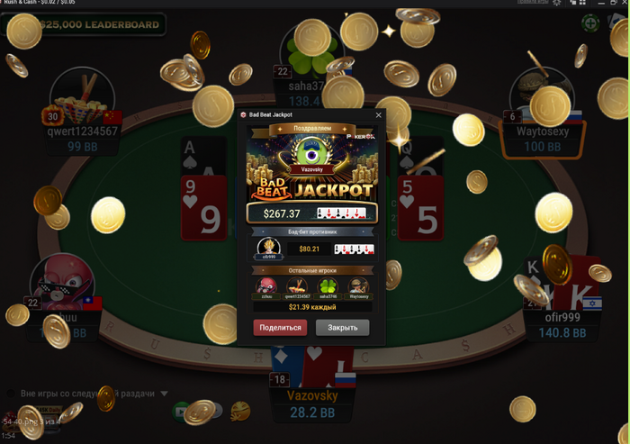 Занес Джек, один бедбитовый и один беспонтовый, когда просто за столом был, чуть-чуть ГГкаре дал и так по мелочи еще с других плюшек.