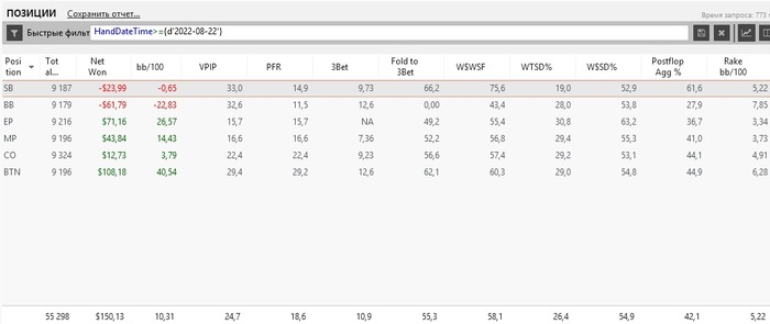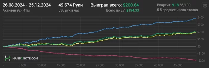 Давно не писал, после перерыва вывел банкролл. оставил по 20$ на ГГ и редстаре. Захотелось покатать со статами - нл2 и нл4 прошел как рыба в воде, но нл10 меня бьет по лицу. Надо признать, что я в небольшом ауте, я, конечно шотал лимиты неудачно и ранее, но такого ощущения натсов в каждой руке у оппонента я раньше не ощущал, при этом статы у оппонентов достаточно пассивные по полю. Есть остаток непонимания.