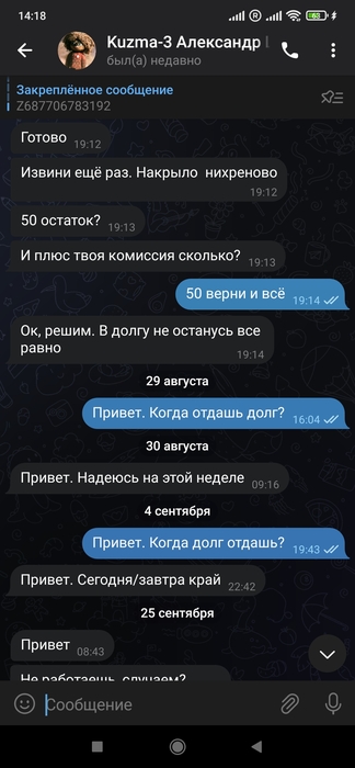 OlegKh, я так понял разговор за полтинник?) Видимо это и есть бизнес, тормознуть по полтиннику и не отдавать 😆