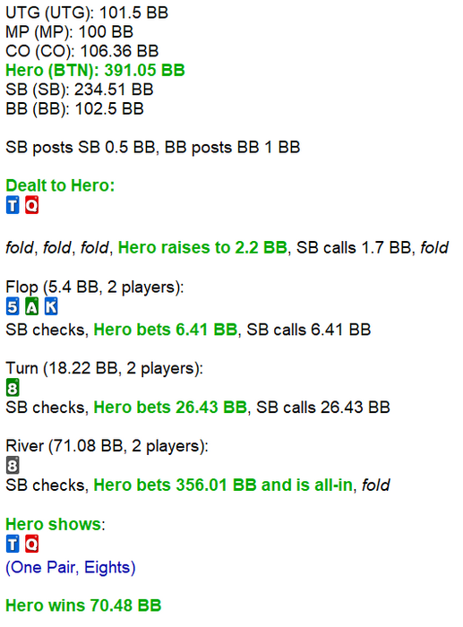 Как же я потел когда начал думать на Ривере Солвер такие споты недоблефовывает ))) хотел в 100% сдаваться с В9о а если блефовать то только Пушем