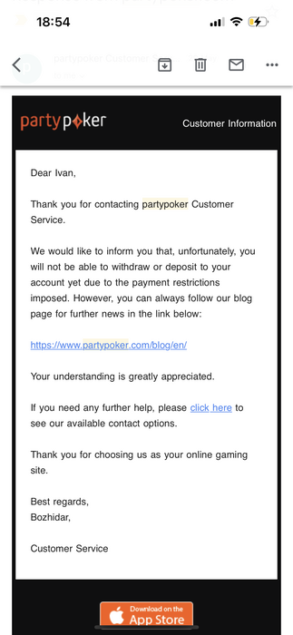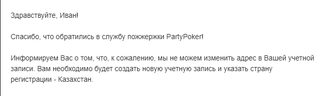 Вероятно ключевым фактором успеха стало заявление о том, что планируешь / переехал в разрешенную страну для игры, например, Мексику и хочешь продолжить играть в partypoker.
