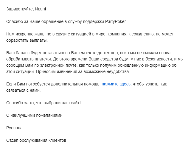 К сожалению, действительно вывести средства с аккаунтов из РФ сейчас недоступно. Менеджеры покер-рума заверяют, что это ситуация временная и средства игроков находятся в сохранности.