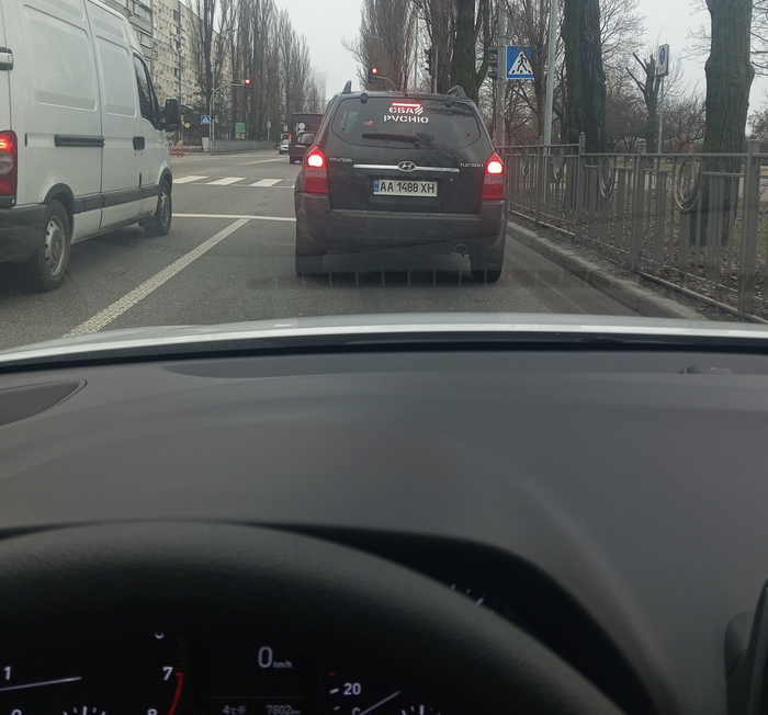 Сфоткал на днях в Киеве. Обратите внимание на номер. Хрен знает, может я и встретил того самого пресловутого нацика, за которым пришли "освободители". Странно правда, что он "ебашит русню" в мирном Киеве, а не под Авдеевкой.