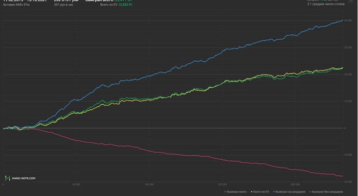 Я в покере довольно давно и никогда не верил в подкрученность гсч, но здесь активно закрадываются сомнения. Ощущение что переключили рубильник и на ШД теперь мне показывают только руки лучше.