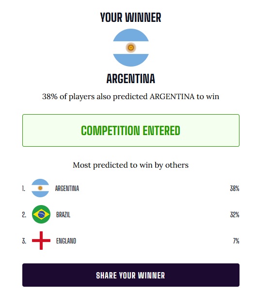Всем удачи! PS. выбрал, что Месси под конец карьеры в сборной получит подарок в виде Кубка Мира)