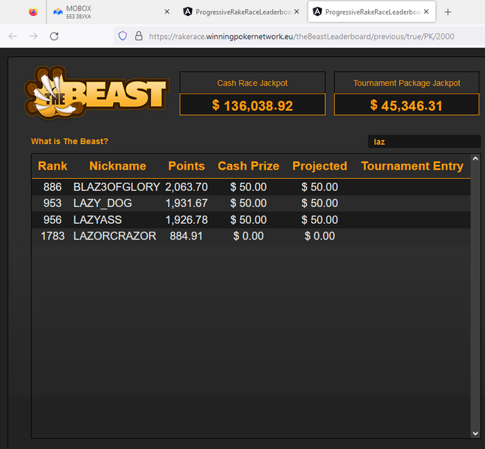 2. Каждую неделю проходит рейк гонка The Beast, и если у меня неделя игровая, то я стабильно в призах - это 50$